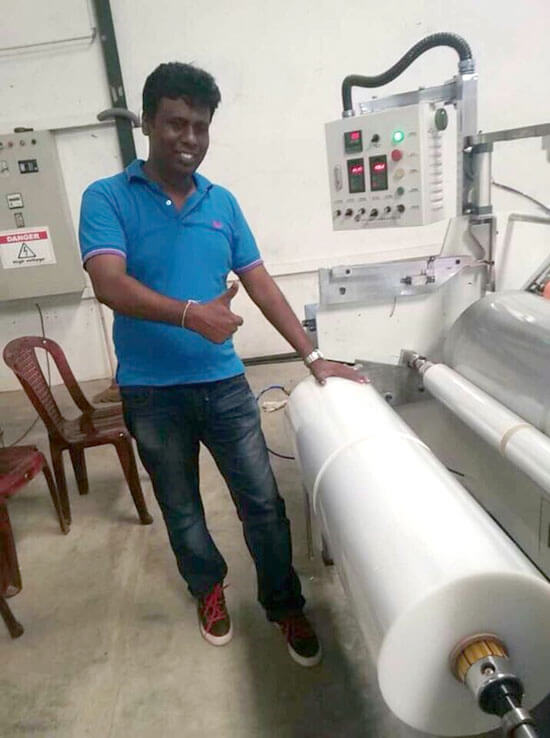 2019 年南非客戶購買了三層吹膜機 ABC1700mm,主要生產袋子。機器在工廠運作正常,客戶非常滿意。
