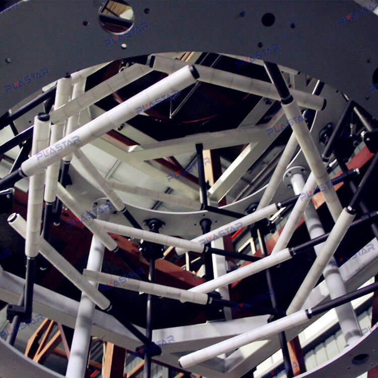 錐形疊加模具:?jiǎn)螌庸矓D吹膜機(jī)生產(chǎn)線采用的是單層錐形模具。我們通過(guò)熱流體學(xué)優(yōu)化布局,并借助3D模擬仿真軟件觀察流體情況。我們確信經(jīng)過(guò)高度的拋光和鍍膜工藝后,經(jīng)奧翔高速螺桿的高壓,高速?zèng)_刷,每個(gè)流道都具有自清潔能力。從而減少粒子更換過(guò)程中的浪費(fèi),減少停機(jī)維護(hù)時(shí)間。